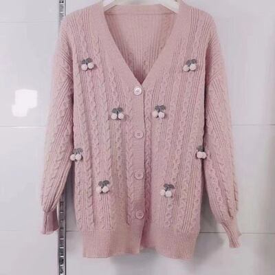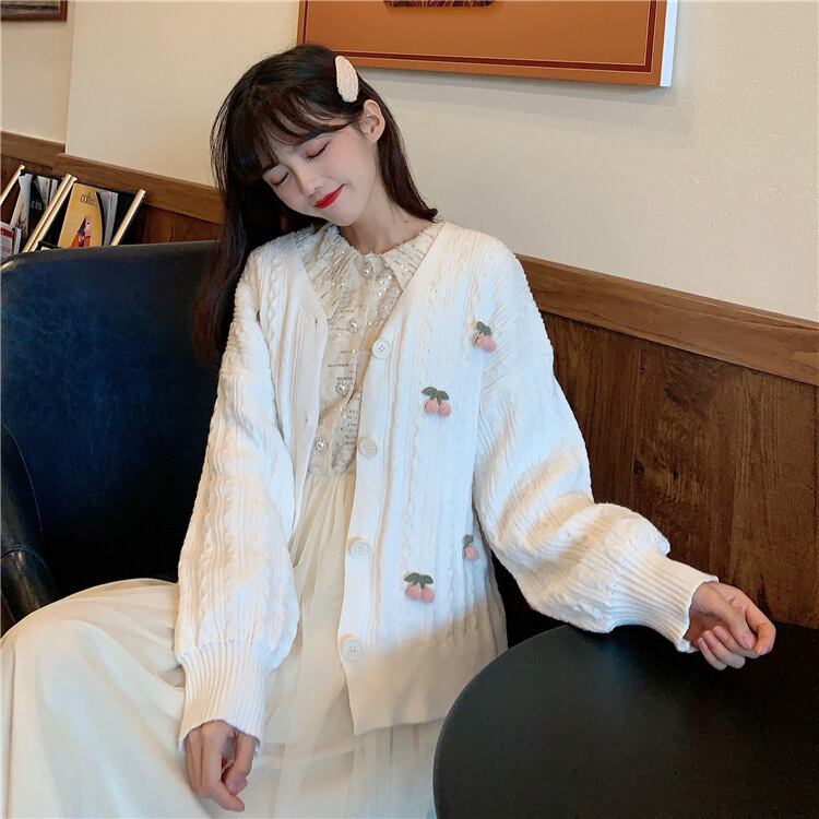 さくらんぼの立体刺?が散りばめられたニットカーディガン。