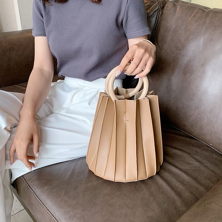 プリーツ 2way ショルダーバッグ バッグ バック カバン かばん 鞄 ハンドバッグ 斜めがけ 斜め掛け 肩がけ 肩掛け ショルダー マチ広 バケツ型 PU かわいい 大人可愛い シンプル カジュアル 大人 上品 おしゃれ お洒落 大人女子 個性的 存在感 無地 10代 20代 30代 レディース 通勤 学生 通学 デート お出かけ 女子会 休日 旅行 普段使い 韓国 韓国系 オルチャン 春 夏 秋 冬 サイズ 小さい 色展開 白 ホワイト 黒 ブラック 緑 グリーン 茶色 ブラウン