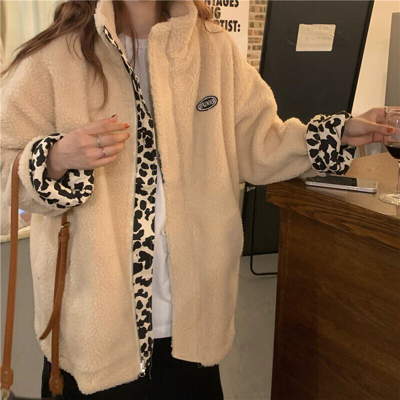 レオパード柄 リバーシブル ボア ジャケット アウター 上着 もこもこアウター ミディアム丈 袖あり 長袖 スタンドカラー もこもこ ふわふわ ファスナー 前開き 2way 厚手 かわいい 大人可愛い カジュアル おしゃれ お洒落 かっこいい こなれ感 ルーズ 個性的 無地 柄 ヒョウ柄 レオパード アニマル柄 春 秋 冬 10代 20代 レディース 通勤 学生 通学 デート お出かけ 女子会 休日 旅行 着回し 普段使い 韓国 暖かい ゆったり フリーサイズ 色展開 灰色 ダークグレー アプリコット