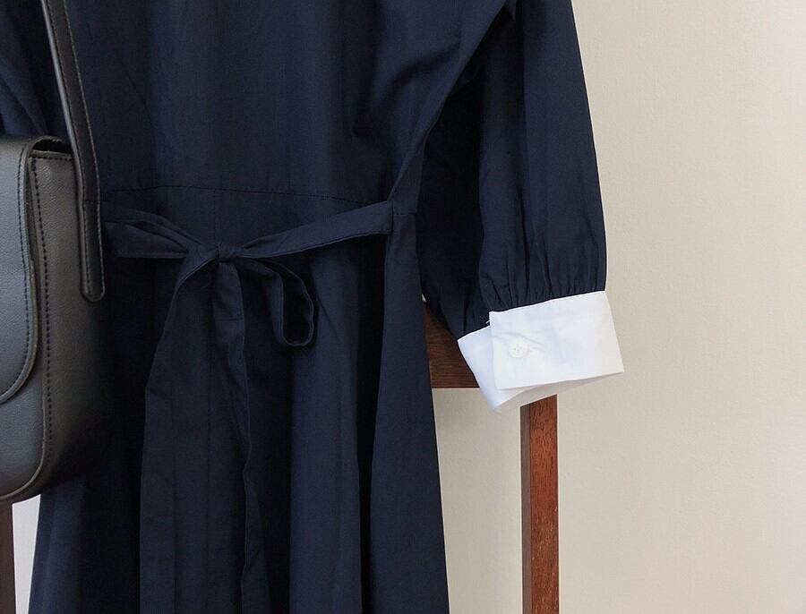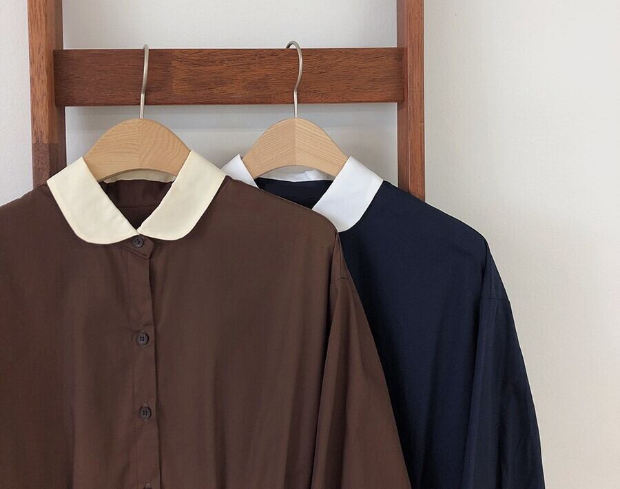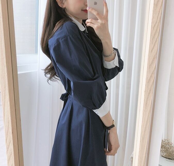 ドールカラー 長袖 ミモレ丈 シャツワンピース ワンピース 膝下 ミモレ 袖あり 襟付き スリム 細身 切り替えデザイン ハイウエスト かわいい 大人可愛い シンプル カジュアル 大人 おしゃれ お洒落 レトロ 大人女子 ラブリー キュート ガーリー 無地 春 秋 10代 20代 レディース 通勤 学生 通学 デート お出かけ 女子会 休日 旅行 着回し 普段使い 重ね着 韓国 韓国系 オルチャン サイズ S M L XL 色展開 茶色 ダークブラウン ネイビー