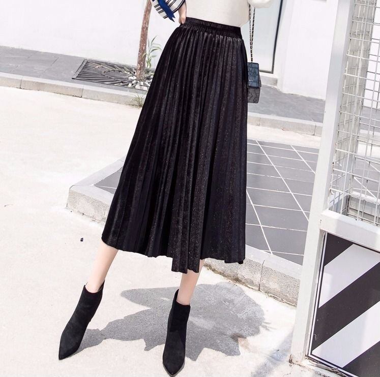 ミモレ丈 ベロア プリーツ スカート ボトムス プリーツスカート 膝下 ミモレ Aライン ハイウエスト ウエストゴム かわいい 大人可愛い きれいめ カジュアル 大人 上品 おしゃれ お洒落 大人女子 無地 春 秋 冬 10代 20代 30代 レディース 通勤 学生 通学 デート お出かけ 女子会 休日 旅行 着回し 普段使い 韓国 楽ちん ゆったり サイズ S M L XL 色展開 黒 ブラック 青 ブルー 緑 グリーン 茶色 ブラウン 灰色 グレー ワインレッド 銀色 シルバー キャメル シャンパン