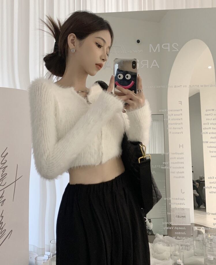 ショート丈 モヘアニット ジップアップ カーディガン トップス セーター ショート 袖あり 長袖 萌袖 ラウンドネック スリム もこもこ ふわふわ ファスナー 前開き リブニット ニット かわいい 大人可愛い きれいめ シンプル カジュアル 大人 おしゃれ お洒落 大人女子 こなれ感 ラブリー キュート 主役級 無地 春 秋 冬 10代 20代 レディース 通勤 学生 通学 デート お出かけ 女子会 休日 旅行 着回し 普段使い 重ね着 韓国 暖かい モテ フリーサイズ 色展開 白 ホワイト 黒 ブラック