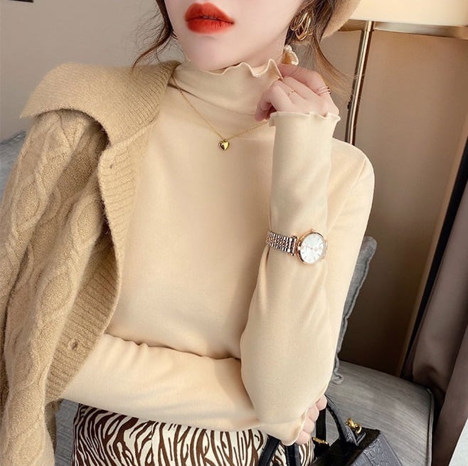 メロウフリル 半ハイネック ロンT トップス プルオーバー ミディアム丈 袖あり 長袖 スリム 細身 かわいい 大人可愛い きれいめ シンプル カジュアル 大人 おしゃれ お洒落 大人女子 ラブリー キュート ガーリー 無地 春 秋 冬 10代 20代 レディース 通勤 学生 通学 デート お出かけ 女子会 休日 旅行 着回し 普段使い 重ね着 韓国 韓国系 オルチャン 大きいサイズ S M L XL 2XL 3XL 色展開 白 ホワイト 黒 ブラック 茶色 ブラウン アプリコット