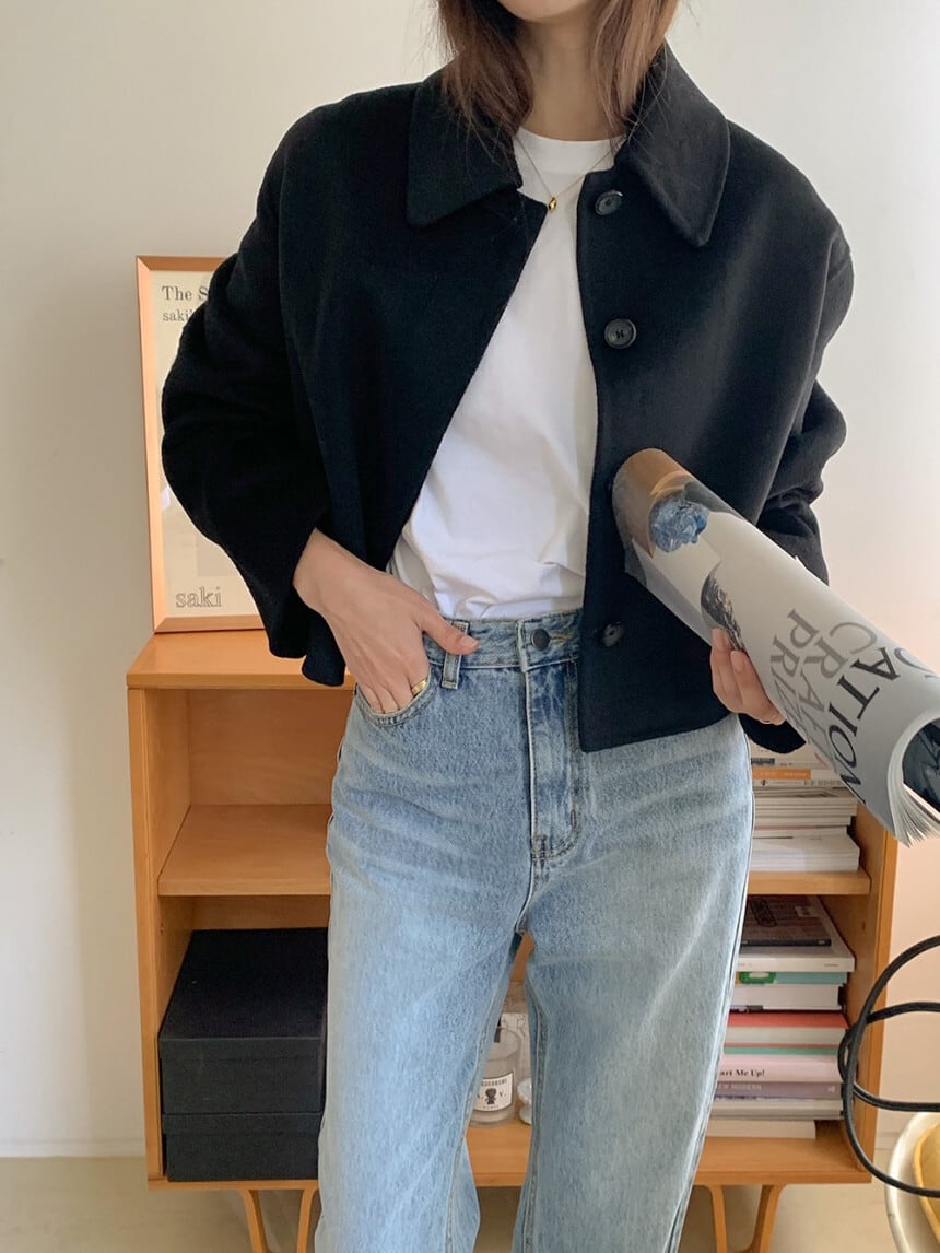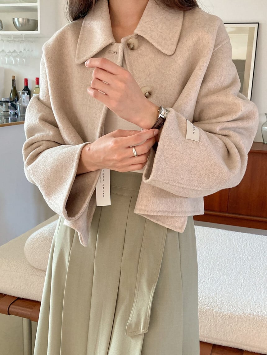 普段使いに取り入れやすい、暖かいウールショートコート。