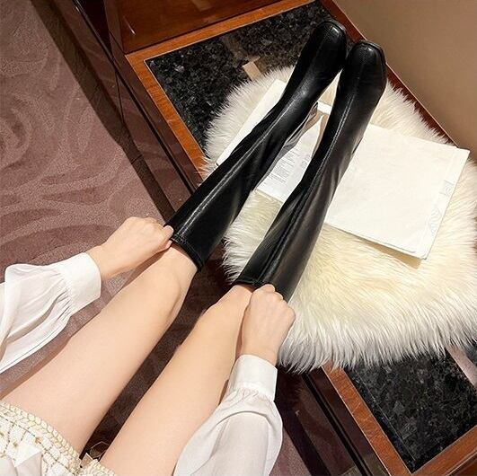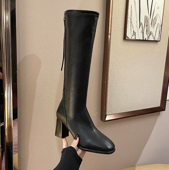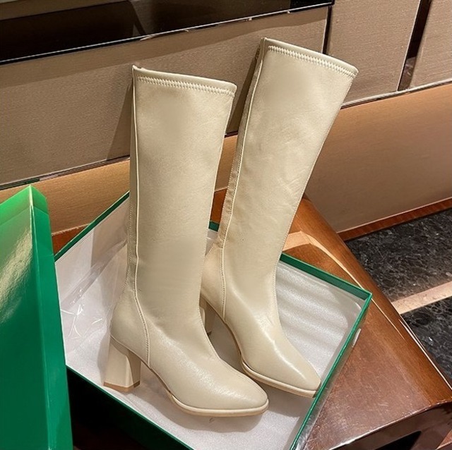 美脚 脚長 太ヒール レザー ロングブーツ シューズ 靴 くつ クツ ブーツ ハイヒール 7cmヒール チャンキーヒール スクエアトゥ 歩きやすい 裏ボア 暖かい PU かわいい 大人可愛い きれいめ シンプル カジュアル 大人 上品 おしゃれ お洒落 大人っぽい 女っぽ 無地 春 秋 冬 10代 20代 レディース 通勤 学生 通学 デート お出かけ 女子会 休日 旅行 普段使い 韓国 サイズ 22.5cm 23.0cm 23.5cm 24.0cm 24.5cm 色展開 黒 ブラック ベージュ
