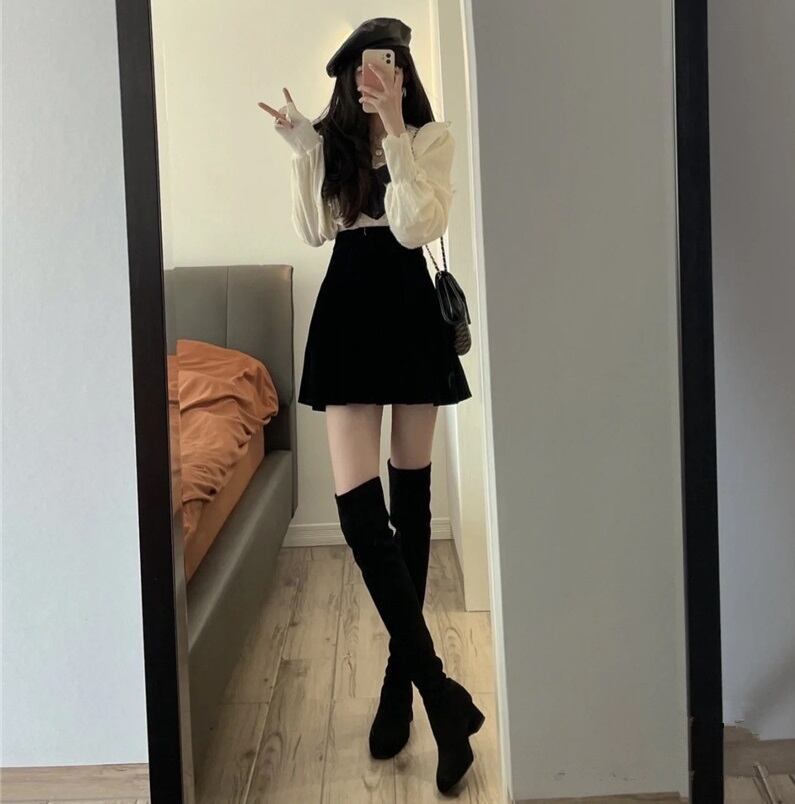 色展開 白(ブラウス)×黒(スカート)