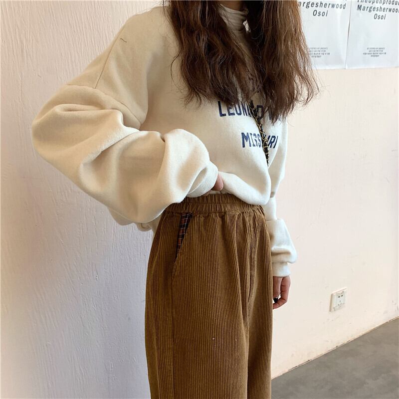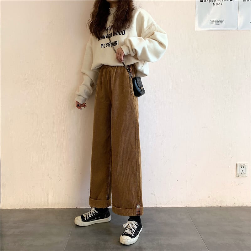 ハイウエスト コーデュロイ パンツ ボトムス ズボン ワイドパンツ ストレートパンツ ロング ロング丈 ストレート ワイド ポケット ウエストゴム 伸縮性 裏起毛 かわいい 大人可愛い シンプル カジュアル 大人 おしゃれ お洒落 大人女子 こなれ感 ルーズ 無地 春 秋 冬 10代 20代 レディース 通勤 学生 通学 デート お出かけ 女子会 休日 旅行 着回し 普段使い 韓国 韓国系 オルチャン 楽ちん 暖かい 脚長 ゆったり フリーサイズ 色展開 茶色 ブラウン アプリコット