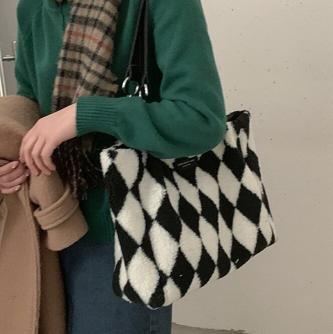#大容量 #かわいい #おしゃれ #チェック柄 #もこもこ