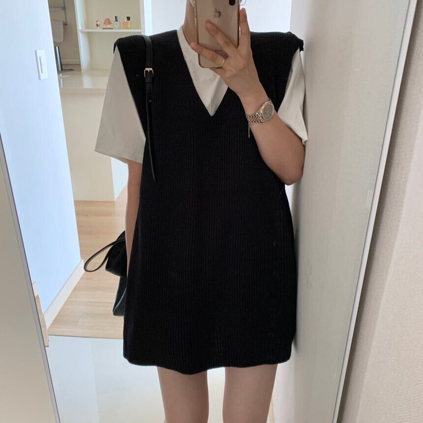 腰ひも付き Vネック ニットベスト トップス ワンピース ベスト チュニック 袖なし ノースリーブ Vネック ウエストマーク ウエストリボン ハイウエスト リブ リブニット ニット かわいい 大人可愛い きれいめ シンプル カジュアル 大人 おしゃれ お洒落 大人女子 こなれ感 無地 春 秋 10代 20代 レディース 通勤 学生 通学 デート お出かけ 女子会 休日 旅行 着回し 普段使い 重ね着 韓国 韓国系 オルチャン ゆったり ゆる フリーサイズ 色展開 黒 ブラック 灰色 グレー アプリコット