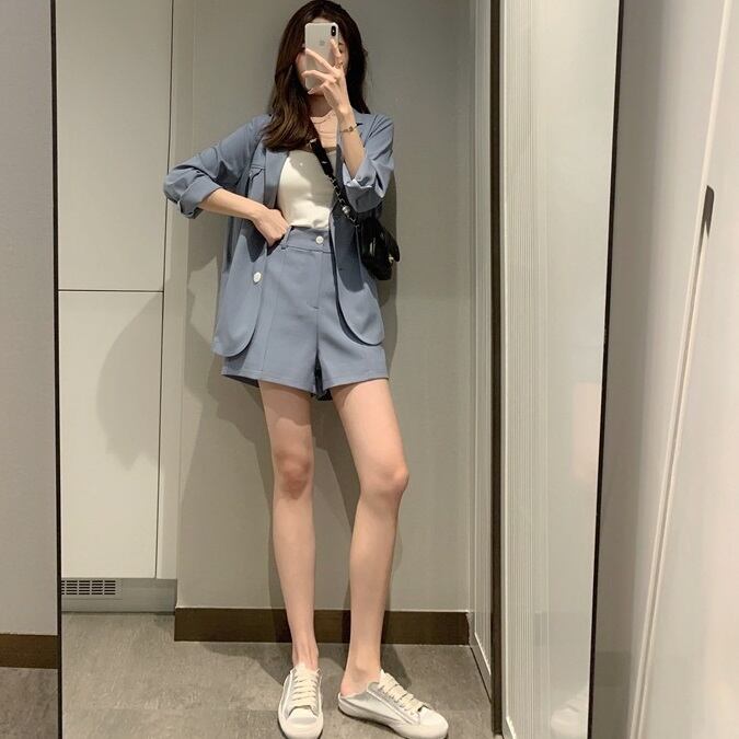 セットアップ 3点セット ジャケット キャミソール ショートパンツ 上下セット ボトムス パンツ アウター ズボン ショート丈 袖あり 長袖 Vネック 襟付き ワイド ポケット ハイウエスト 前開き スリーピース かわいい 大人可愛い シンプル カジュアル 大人 おしゃれ お洒落 大人女子 こなれ感 ルーズ 無地 春 秋 10代 20代 レディース 通勤 学生 通学 デート お出かけ 女子会 休日 旅行 着回し 普段使い 重ね着 韓国 コーデ ゆったり サイズ S M L 色展開 青 ブルー オフホワイト