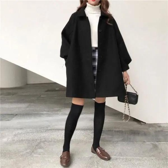 ポロ襟 長袖 パフスリーブ ウールコート アウター コート 上着 ロングコート ミディアム丈 袖あり 長袖 襟付き 前開き ウール かわいい 大人可愛い シンプル カジュアル 大人 おしゃれ お洒落 レトロ 大人女子 こなれ感 ルーズ 無地 春 秋 冬 10代 20代 レディース 通勤 学生 通学 デート お出かけ 女子会 休日 旅行 着回し 普段使い 重ね着 韓国 韓国系 オルチャン 暖かい ゆったり ゆる サイズ S M L XL 色展開 黒 ブラック カーキ