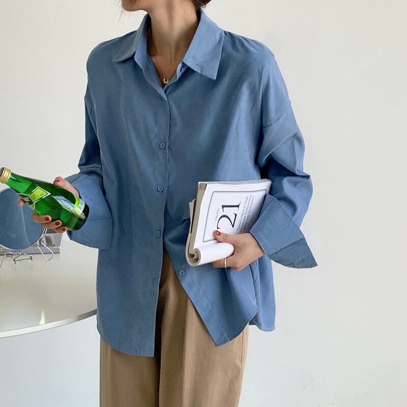カラバリ シンプル 長袖 ルーズ シャツ トップス 白シャツ 白トップス ミディアム丈 袖あり ドロップショルダー 襟付き 前開き 綿 かわいい 大人可愛い きれいめ カジュアル 大人 おしゃれ お洒落 大人女子 こなれ感 フォーマル 無地 春 秋 10代 20代 30代 レディース 通勤 学生 通学 デート お出かけ 女子会 休日 旅行 着回し 普段使い 重ね着 韓国 ゆったり フリーサイズ 色展開 白 ホワイト 赤 レッド 青 ブルー カーキ ダークブルー