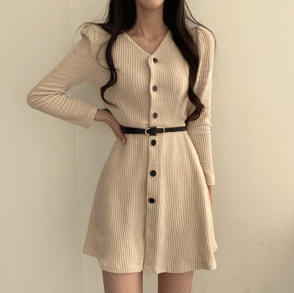 ベルト付き ミニ丈 コーデュロイ ワンピース ミニ 膝上 袖あり 長袖 Vネック 襟なし スリム 細身 Aライン 切り替えデザイン ベルト ウエストマーク ハイウエスト リブ かわいい 大人可愛い きれいめ シンプル カジュアル 大人 おしゃれ お洒落 レトロ 大人女子 無地 春 秋 10代 20代 レディース 通勤 学生 通学 デート お出かけ 女子会 休日 旅行 着回し 普段使い 重ね着 韓国 韓国系 オルチャン 脚長 フリーサイズ 色展開 黒 ブラック アプリコット