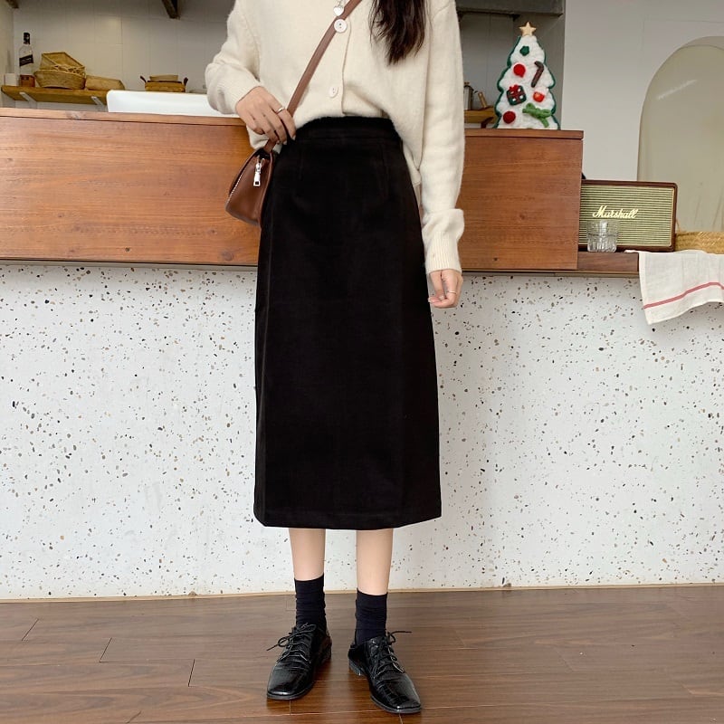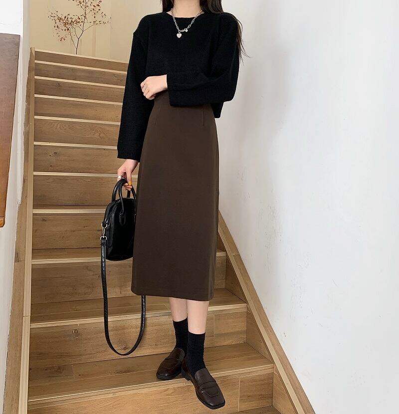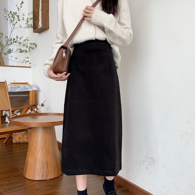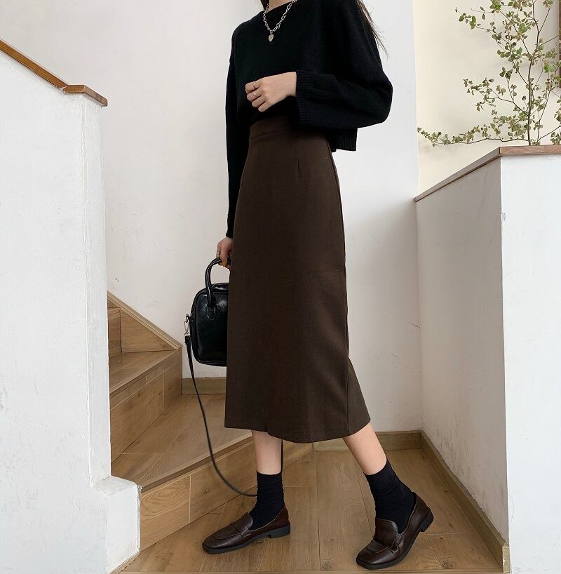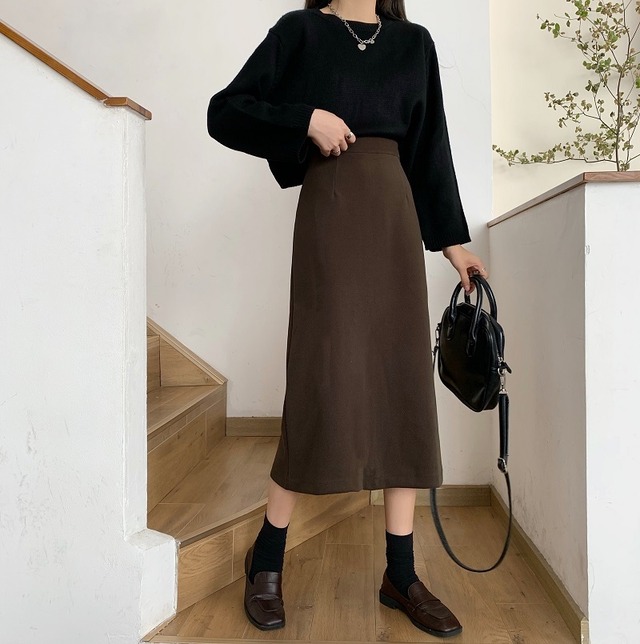 Aライン ハイウエスト ミモレスカート スカート ロングスカート 膝下 ミモレ丈 スリム タイト 細身 スリット バックスリット ファスナー ポリエステル かわいい 大人可愛い シンプル カジュアル 大人 おしゃれ お洒落 レトロ 大人女子 無地 春 秋 冬 10代 20代 レディース 通勤 学生 通学 デート お出かけ 女子会 休日 旅行 着回し 普段使い 双子 韓国 韓国系 オルチャン コーデ 脚長 サイズ S M L XL 色展開 黒 ブラック 茶色 ブラウン