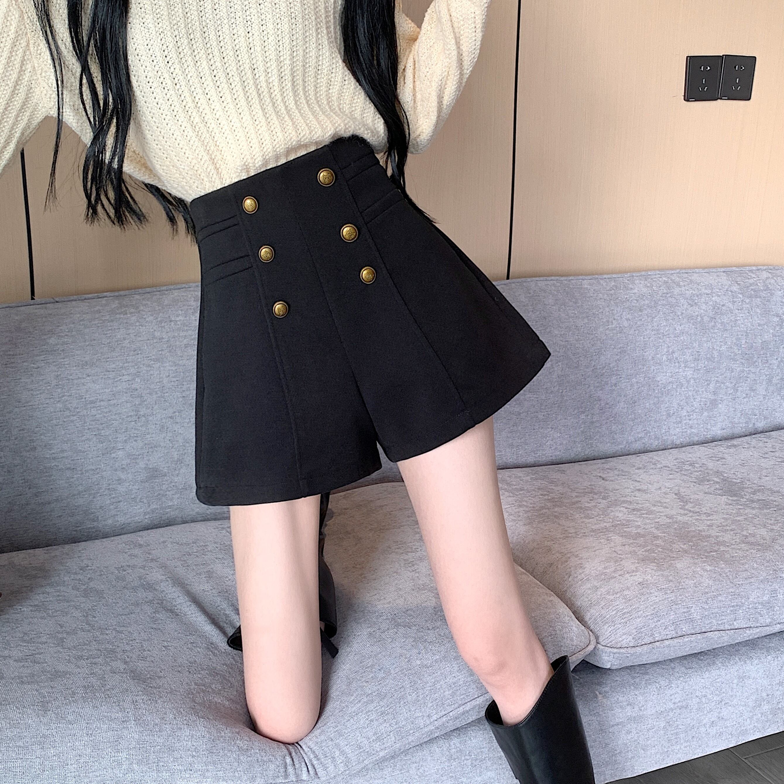 ダブルボタン ウール ハイウエスト ショートパンツ ボトムス パンツ ズボン ワイドパンツ ショート ショート丈 ワイド Aライン ハイウエスト かわいい 大人可愛い きれいめ シンプル カジュアル 大人 上品 おしゃれ お洒落 レトロ 大人女子 無地 春 秋 冬 10代 20代 レディース 通勤 学生 通学 デート お出かけ 女子会 休日 旅行 着回し 普段使い 韓国 韓国系 オルチャン 美脚 脚長 サイズ S M L 色展開 黒 ブラック 茶色 ブラウン