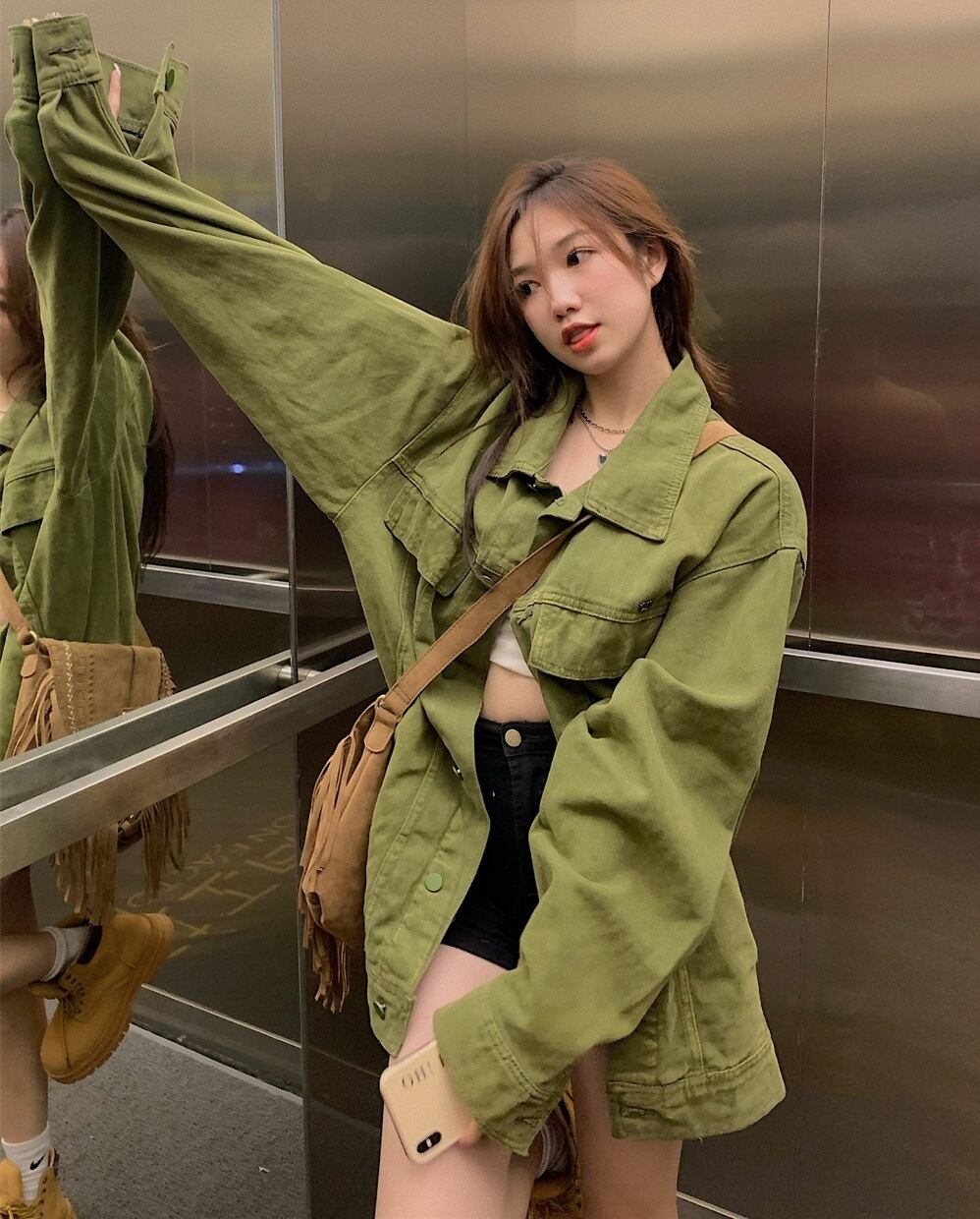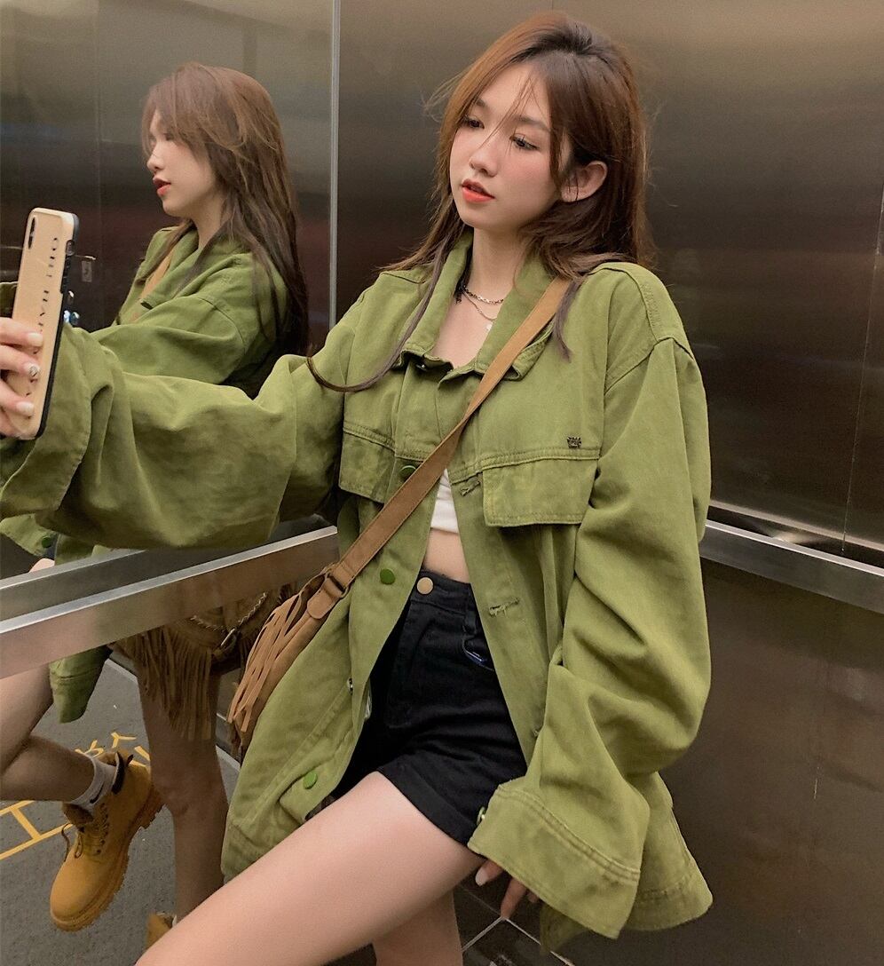 オーバーサイズ 長袖 デニムジャケット トップス ジャケット ミディアム丈 袖あり ドロップショルダー 襟付き ポケット 前開き デニム カラーデニム かわいい 大人可愛い シンプル カジュアル 大人 おしゃれ お洒落 かっこいい 大人女子 こなれ感 ボーイッシュ 無地 春 秋 10代 20代 レディース 通勤 学生 通学 デート お出かけ 女子会 休日 旅行 着回し 普段使い 重ね着 韓国 韓国系 オルチャン ゆったり ゆる フリーサイズ 色展開 緑 グリーン