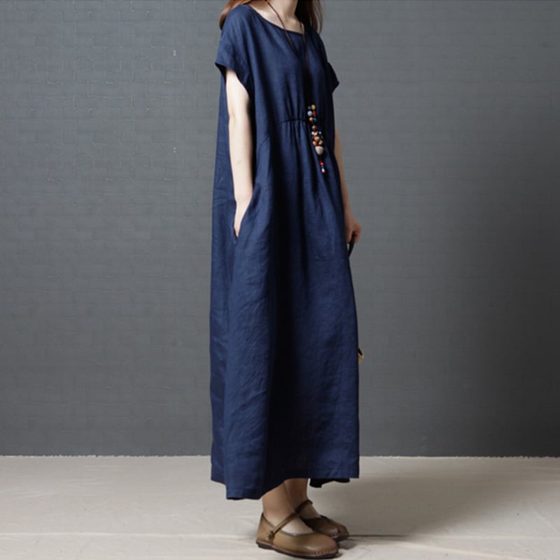 ロングワンピース ワンピース フレアワンピース ロング ロング丈 袖あり 半袖 ラウンドネック フレア Aライン 切り替えデザイン 綿 麻 リネン かわいい 大人可愛い きれいめ シンプル カジュアル 大人 上品 おしゃれ お洒落 大人可愛い 大人女子 こなれ感 ラフ キュート ガーリー 個性的 モダン 主役級 存在感 無地 春 夏 10代 20代 30代 レディース 学生 通学 デート お出かけ 女子会 休日 リゾート 旅行 着回し 普段使い 重ね着 体系カバー サイズ M L XL 2XL ネイビー
