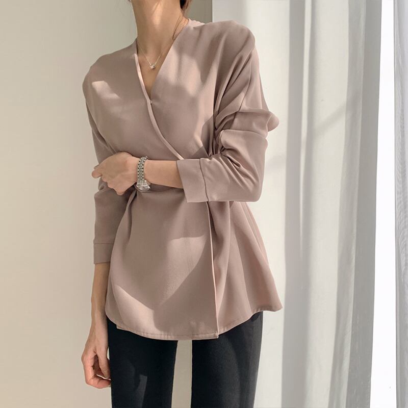 シャツ 袖あり Vネック スリム きれいめ 大人 上品 おしゃれ お洒落 かっこいい レトロ 大人女子 こなれ感 個性的 クール モード系 ヨーロピアン ストリート オールマッチ ハイエンド ニッチ 高級感 シック 無地 春 秋 2022 ディナー コンサート 鑑賞会 20代 30代 40代 レディース 女性用 ママ OL デート お出かけ 女子会 休日 パーティー ホテル ガーデン レストラン ファッション コーデ スタイル モテ 激安 安い インスタ映え サイズ S M L 色展開 黒 ブラック