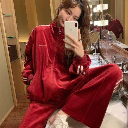 お家時間のリラックスタイムを過ごす部屋着・ルームウェアとしては勿論、光沢感のあるベロア生地の存在感を活かして秋冬ファッションのベースアイテムとしても大活躍間違いなし。