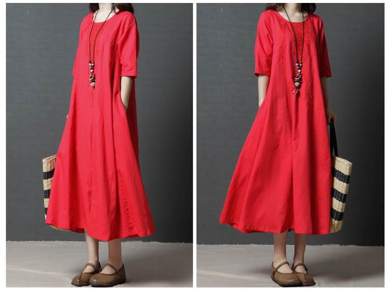 半袖ワンピース ワンピース フレアワンピース 膝下 ミモレ ミモレ丈 ミディアム丈 袖あり 半袖 5分袖 五分袖 ラウンドネック 襟なし フレア 綿 麻 リネン きれいめ シンプル カジュアル 大人 おしゃれ お洒落 かっこいい 大人女子 こなれ感 とろみ感 無地 春 夏 20代 30代 40代 レディース デート お出かけ 公園デビュー 女子会 休日 着回し 普段使い ファッション スタイル 楽ちん サイズ M L XL 2XL 赤 レッド グリーン 紫