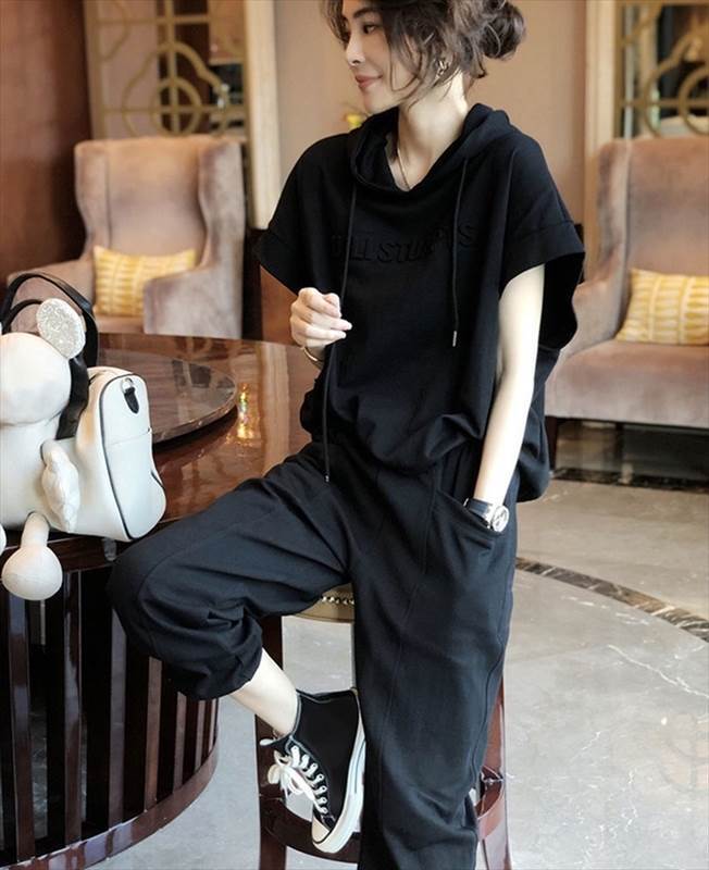 半袖パーカーとクロップドパンツの楽ちんな夏スタイルに♪