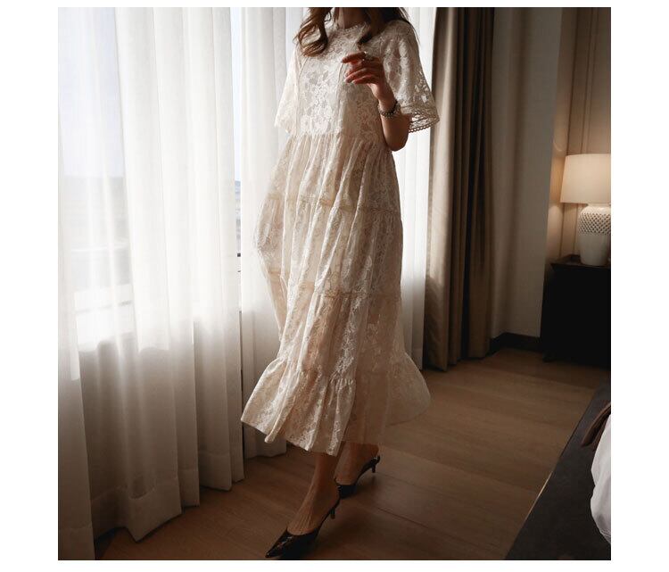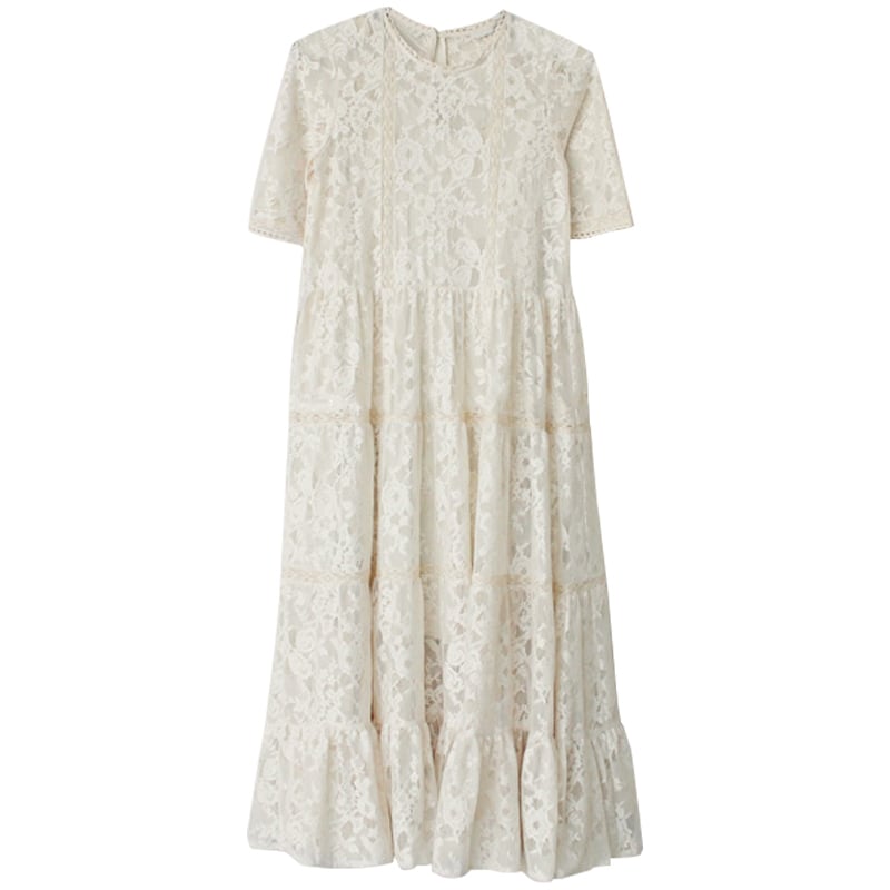 レースワンピース ワンピース フレアワンピース ロング ロング丈 袖あり 半袖 ラウンドネック フレア Aライン レース 透け感 綿 かわいい 大人可愛い きれいめ シンプル カジュアル 大人 上品 おしゃれ お洒落 かっこいい レトロ 大人可愛い 大人女子 こなれ感 ラブリー キュート ガーリー モダン 主役級 存在感 無地 春 夏 秋 10代 20代 30代 レディース OL 通勤 学生 通学 デート お出かけ 女子会 着回し 普段使い 重ね着 サイズ S M L XL 色展開 ベージュ