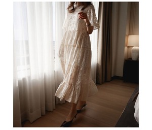 清楚な乙女を思わせる、花柄レースのワンピース。