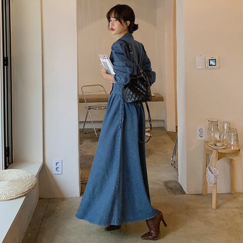 #長袖 #かわいい #シンプル #おしゃれ #デニムロングワンピース