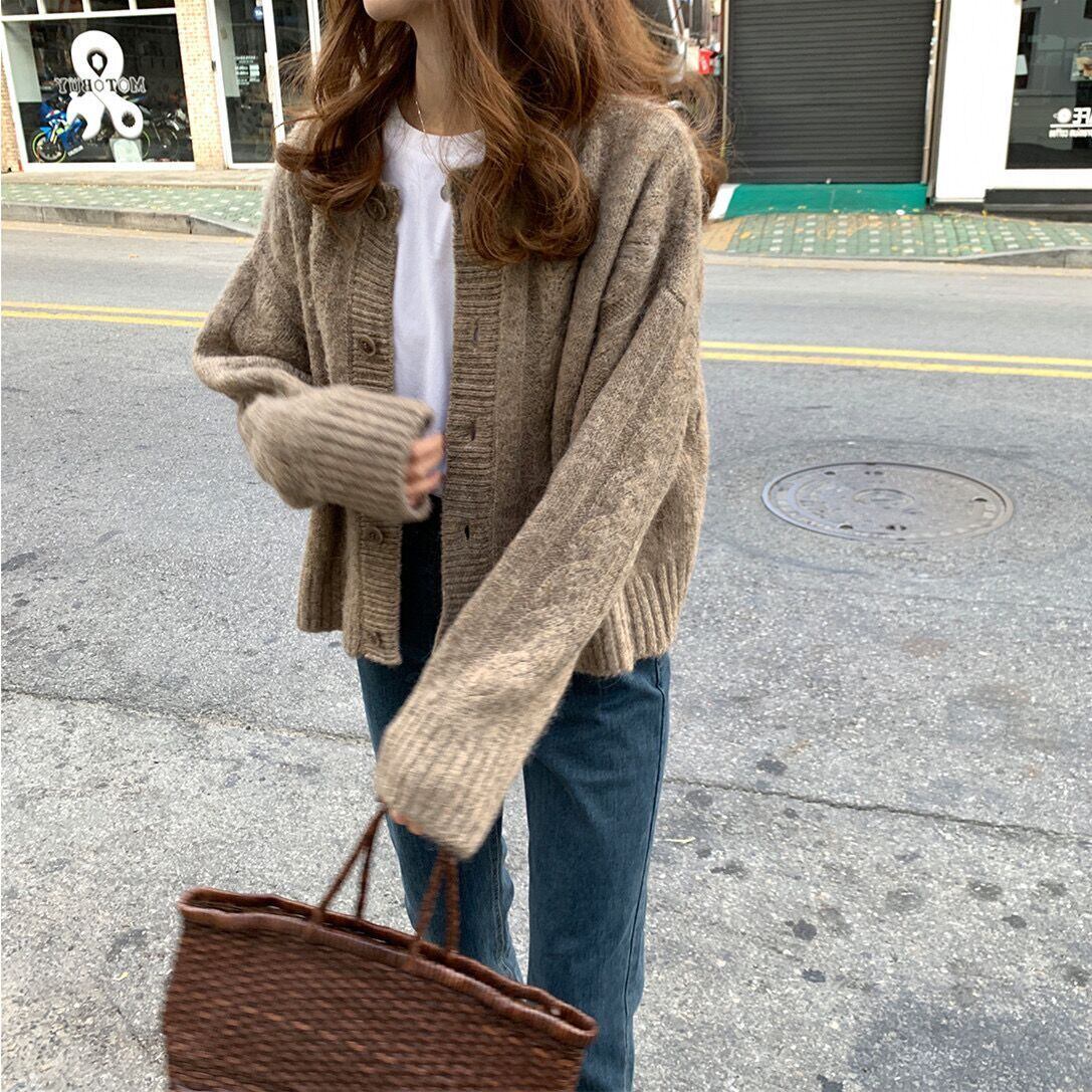 トップス ニット セーター カーディガン ミドル丈 袖あり 長袖 Uネック ストレート ニット かわいい 大人可愛い きれいめ シンプル カジュアル おしゃれ お洒落 レトロ メンズライク ガーリー ツイスト編み 春 秋 冬 10代 20代 30代 レディース 学生 通学 デート お出かけ ファッション サイズ S M L XL 色展開 グレー アプリコット キャメル