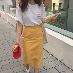 スカート ヒップスカート ロング丈 スリム ストレート バックスリット ハイウエスト かわいい 大人可愛い カジュアル おしゃれ お洒落 メンズライク ガーリー ラブリー キュート 無地 春 夏 秋 10代 20代 レディース デート お出かけ ファッション モテ サイズ S M L XL 色展開 イエロー ピンク