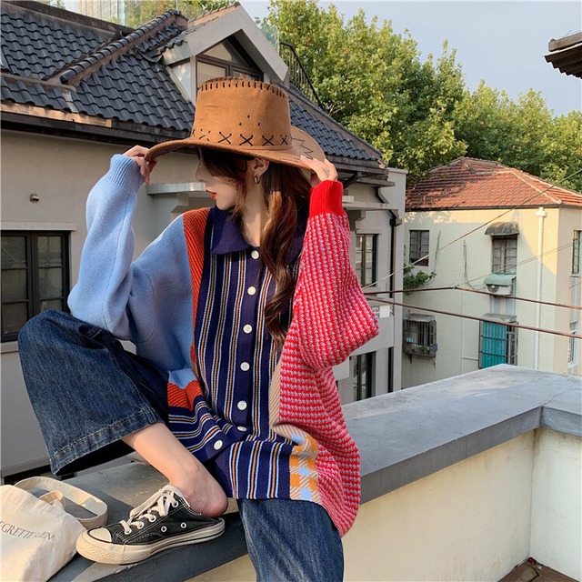 トップス セーター カーディガン 袖あり 長袖 ボリューム袖 襟なし フレア ワイド ニット かわいい 大人可愛い カジュアル 大人 おしゃれ お洒落 かっこいい アジアン エスニック 無地 ボーダー 春 秋 10代 20代 レディース 着回し 普段使い 韓国 韓国系 オルチャン ファッション XS S M L