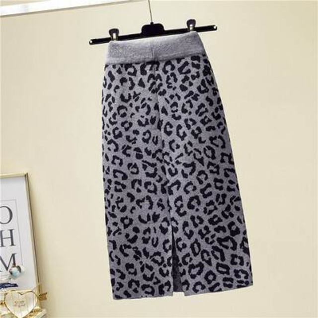 ヒョウ柄ニットスカート スカート ニットスカート ニット 大人可愛い おしゃれ お洒落 個性的 存在感 ヒョウ柄 秋 冬 10代 20代 お出かけ 女子会 休日 普段使い 韓国 韓国系 オルチャン フリーサイズ 白 ホワイト 黒 ブラック 灰色 グレー カーキ