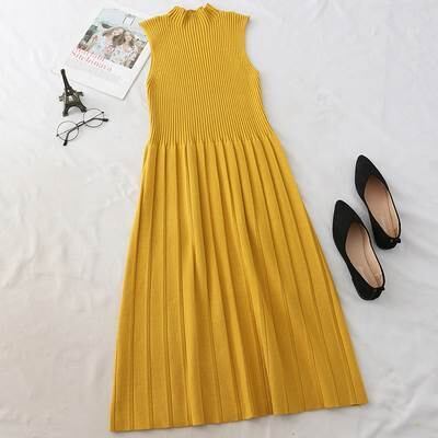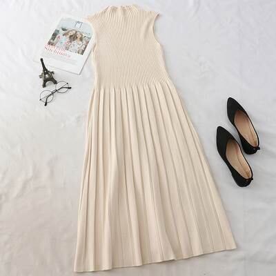 ニットワンピ レディース ノースリーブ ワンピース プリーツ リブ ニットワンピース Aライン ハーフハイネック 半ハイネック カジュアル 通勤 通学 お出かけ お洒落 おしゃれ 大人 上品 大人可愛い かわいい フェミニン 春 秋 ワンサイズ ブラック 黒 カーキ ベージュ アプリコット イエロー 黄色 グリーン 緑 ブルー 青 コーヒーブラウン ブラウン 茶色