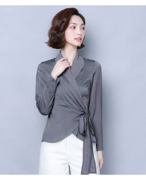 トップス ブラウス 袖あり 長袖 フレアスリーブ Vネック ポリエステル 大人可愛い きれいめ シンプル 大人 上品 おしゃれ こなれ感 ラフ フォーマル とろみ感 抜け感 無地 春 夏 秋 10代 20代 30代 40代 レディース 着回し 普段使い M L XL 2XL 3XL 4XL 小さいサイズ 大きいサイズ 灰色 グレー