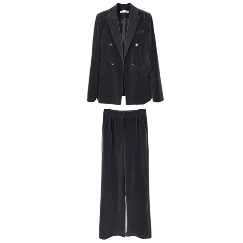 ジャケット パンツ スーツ レディース セットアップ ツーピース ベルベット 上下セット 2点セット スーツの襟 ダブルブレスト ストレート ミディアム かわいい 大人可愛い きれいめ シンプル 大人 上品 おしゃれ お洒落 かっこいい レトロ こなれ感 メンズライク 個性的 クール モード系 セクシー エレガント モダン 主役級 存在感 フォーマル 無地 入学式 入園式 卒業式 卒園式 謝恩会 結婚式 モテ 定番 美脚 脚長 10代 20代 30代 40代 50代 60代 オールシーズン 春 夏 秋 冬