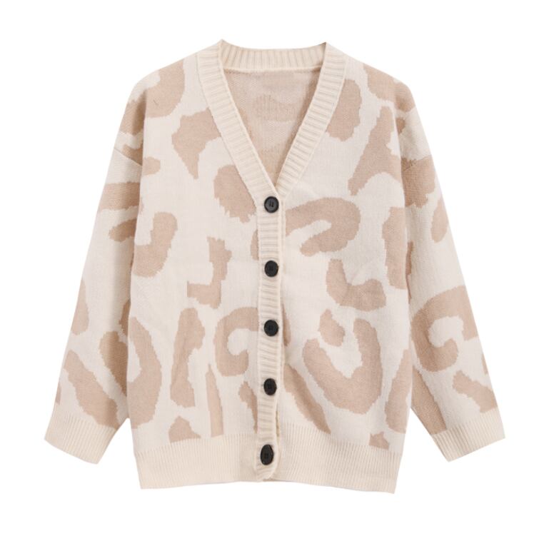 ヒョウ柄が可愛いニットカーディガン。オーバーサイズのゆったりシルエットがガーリー。コーデのアクセントにもなるおしゃれアイテムです。