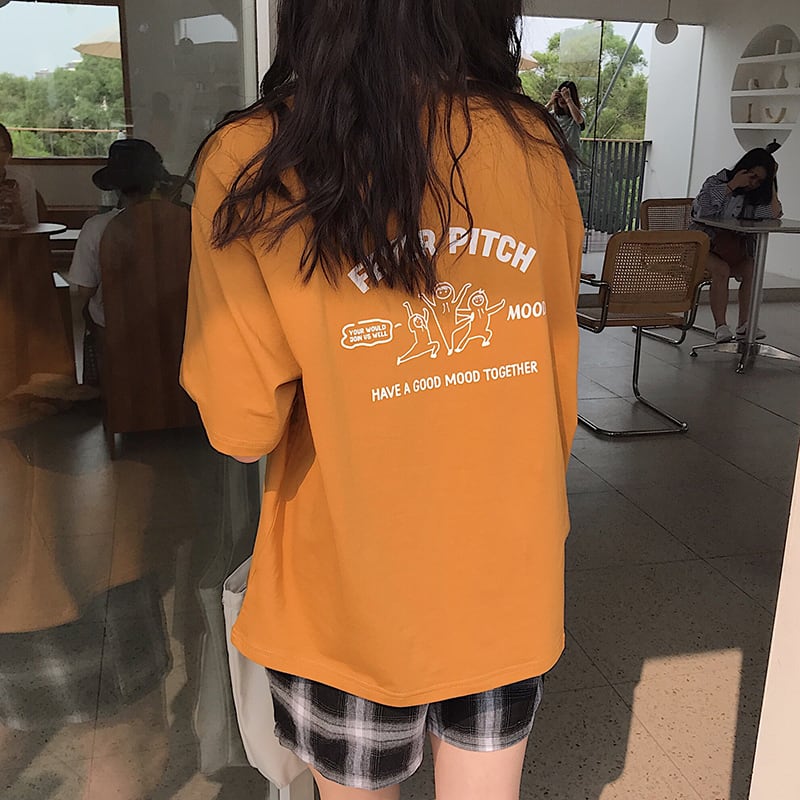 トップス Tシャツ シャツ 袖あり 半袖 ラウンドネック 綿 かわいい シンプル カジュアル おしゃれ お洒落 レトロ 大人女子 こなれ感 ラフ メンズライク 柄 プリント 春 夏 10代 20代 海 プール 着回し 普段使い 重ね着 M L XL 青 ブルー 緑 グリーン 黄色 イエロー オレンジ