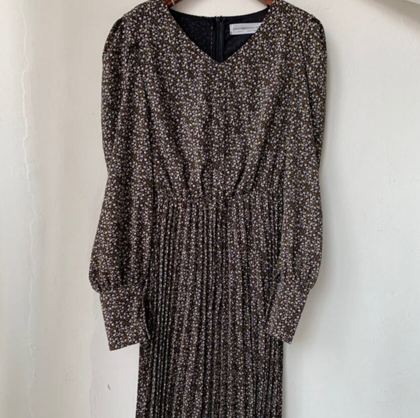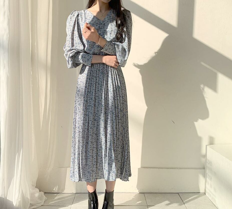 ワンピース シャツワンピース ミモレ ミモレ丈 袖あり 長袖 パフスリーブ Vネック 襟なし ストレート プリーツ ウエストマーク ハイウエスト 薄手 かわいい 大人可愛い きれいめ シンプル カジュアル 大人 上品 おしゃれ お洒落 大人可愛い 大人女子 こなれ感 ラフ ガーリー ルーズ 個性的 主役級 存在感 とろみ感 抜け感 柄 花柄 小花柄 春 誕生日 10代 20代 30代 40代 50代 60代 レディース 女性用 ママ マタニティ オフィス ビジネス OL 通勤 学生 通学 デート お出かけ