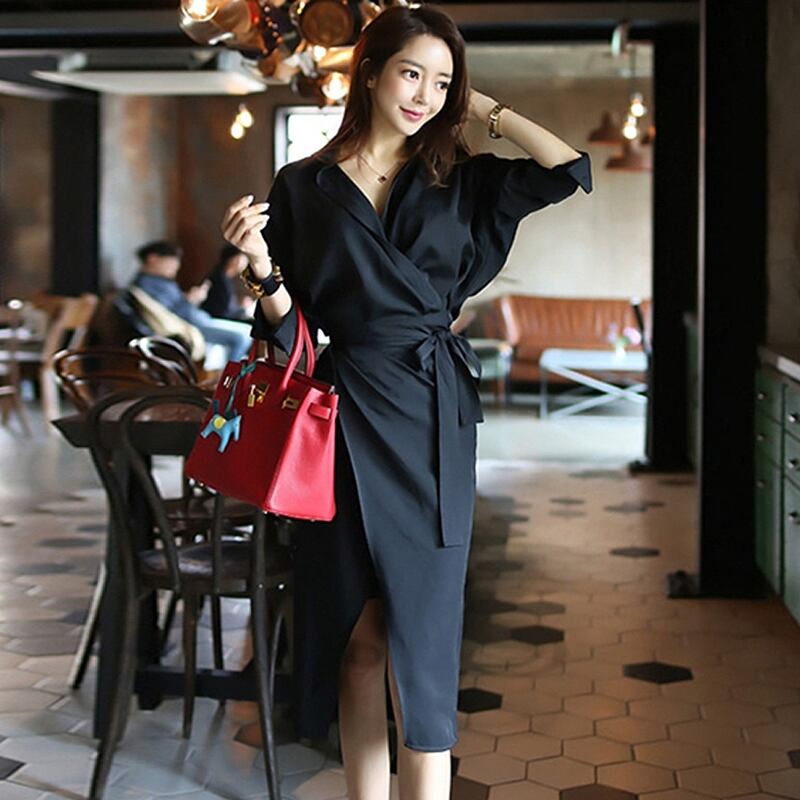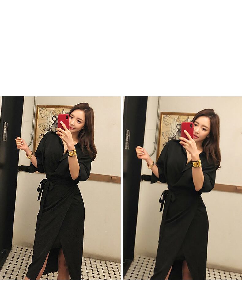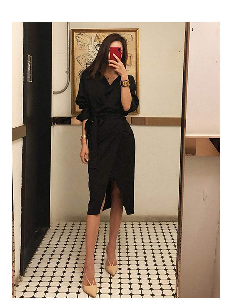 ワンピース ドレス ロングスカート 膝下 ミディ丈 袖あり 長袖 Vネック 襟付き スリム タイト 細身 ウエストマーク スリット かわいい 大人可愛い きれいめ シンプル カジュアル 大人 上品 おしゃれ お洒落 かっこいい 大人可愛い 大人女子 こなれ感 ラフ 個性的 クール エレガント 主役級 存在感 無地 秋 20代 30代 レディース 女性用 デート お出かけ 女子会 お泊まり 休日 パーティー イベント スタイル モテ 美脚 脚長 サイズ S M L XL 色展開 黒 ブラック