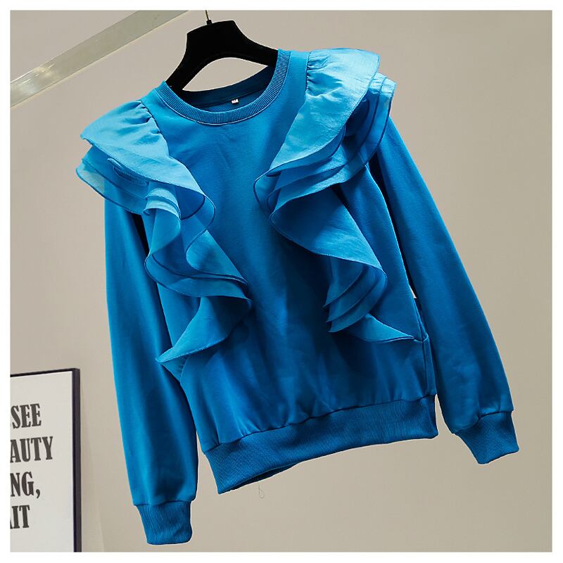 トップス カットソー プルオーバー 袖あり 長袖 ラウンドネック 襟なし フリル かわいい 大人可愛い きれいめ シンプル カジュアル おしゃれ お洒落 大人可愛い 大人女子 こなれ感 ラフ ラブリー キュート ガーリー 個性的 主役級 存在感 無地 春 10代 20代 レディース 女性用 デート お出かけ 公園デビュー 女子会 お泊まり 休日 旅行 ファッション コーデ スタイル モテ サイズ S M L 色展開 白 ホワイト 黒 ブラック 青 ブルー ピンク
