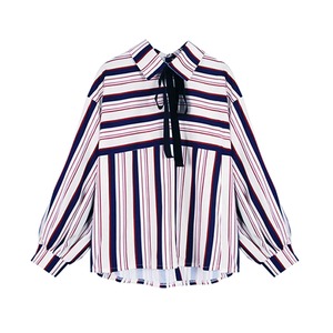 トップス シャツ レディース 単列マルチボタン ボタン 七分袖 ストレート ポロカラー 蝶ネクタイ リボン ランタンスリーブ かわいい 大人可愛い きれいめ シンプル 大人 上品 おしゃれ お洒落 ラブリー キュート ガーリー ルーズ 着回し 普段使い 重ね着 お揃い 双子 韓国 韓国系 オルチャン ファッション コーデ スタイル 楽ちん オフィス ビジネス OL 通勤 学生 通学 デート お出かけ モテ 女子会 お泊まり 休日 10代 20代 30代 40代 ストライプ柄 オールシーズン 春 夏 秋 冬