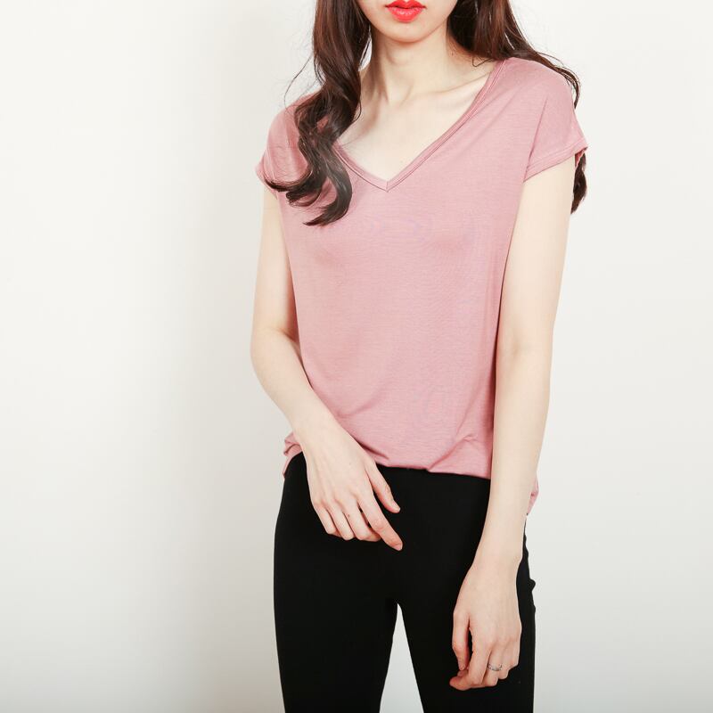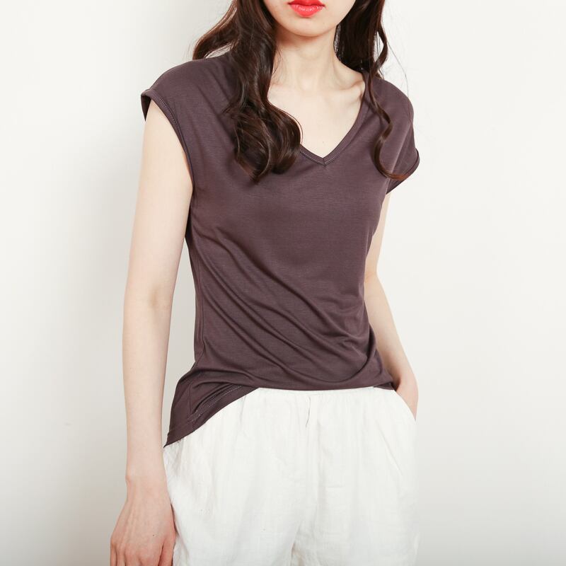 トップス シャツ 袖あり 半袖 フレンチスリーブ Vネック ポリエステル かわいい シンプル カジュアル 大人可愛い 大人女子 こなれ感 ラフ 無地 春 夏 10代 20代 30代 着回し 普段使い 重ね着 韓国 韓国系 オルチャン ファッション コーデ スタイル 楽ちん M L XL 2XL 茶色 ブラウン ピンク