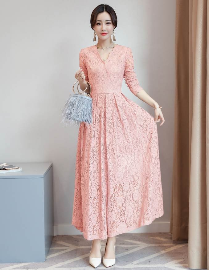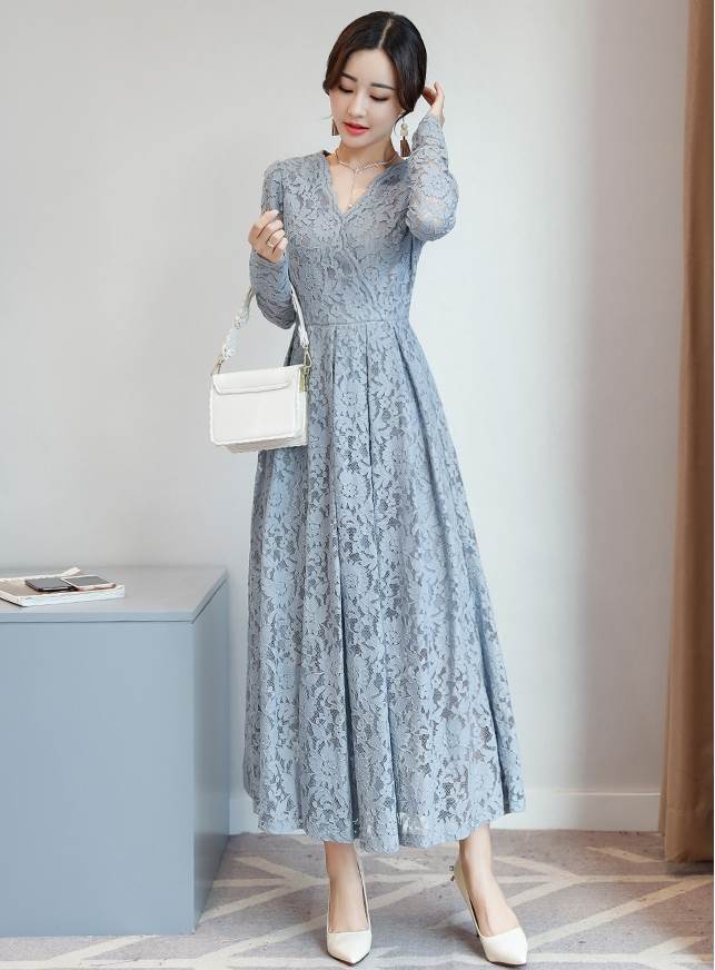 #長袖 #かわいい #シンプル #おしゃれ #Vネック総レースワンピース