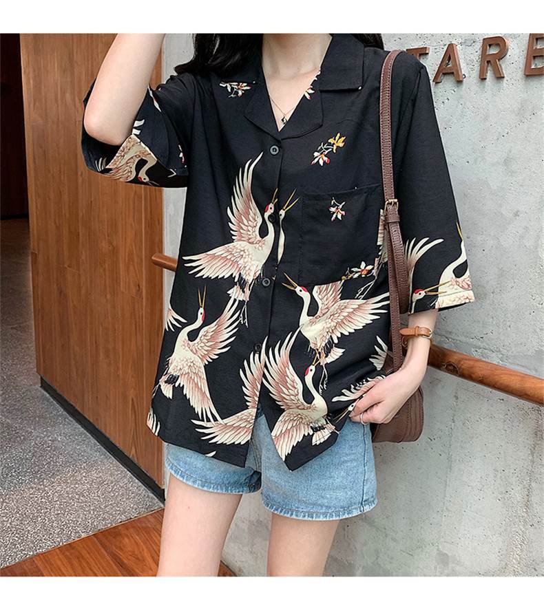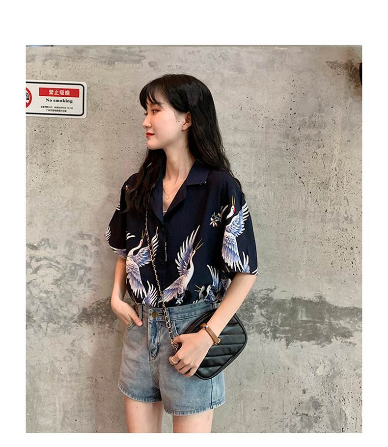 半袖アロハシャツ トップス シャツ 袖あり 半袖 Vネック 襟付き 前開き かわいい 大人可愛い シンプル カジュアル おしゃれ お洒落 かっこいい 大人可愛い 大人女子 こなれ感 個性的 クール 柄 アニマル柄 春 夏 10代 20代 30代 レディース 学生 通学 デート お出かけ 公園デビュー 女子会 休日 着回し 普段使い 重ね着 サイズ S M L XL 色展開 青 ブルー 茶色 ブラウン