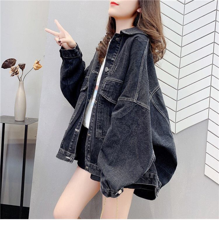 アウター ジャケット Gジャン 袖あり 長袖 ボリューム袖 襟付き デニム ブルーデニム カラーデニム かわいい 大人可愛い シンプル カジュアル おしゃれ かっこいい 大人女子 ラフ 無地 春 秋 10代 20代 レディース デート お出かけ S M L XL 2XL 黒 ブラック 青 ブルー