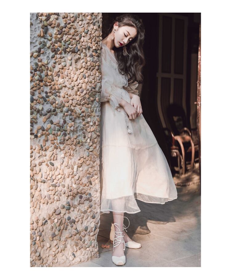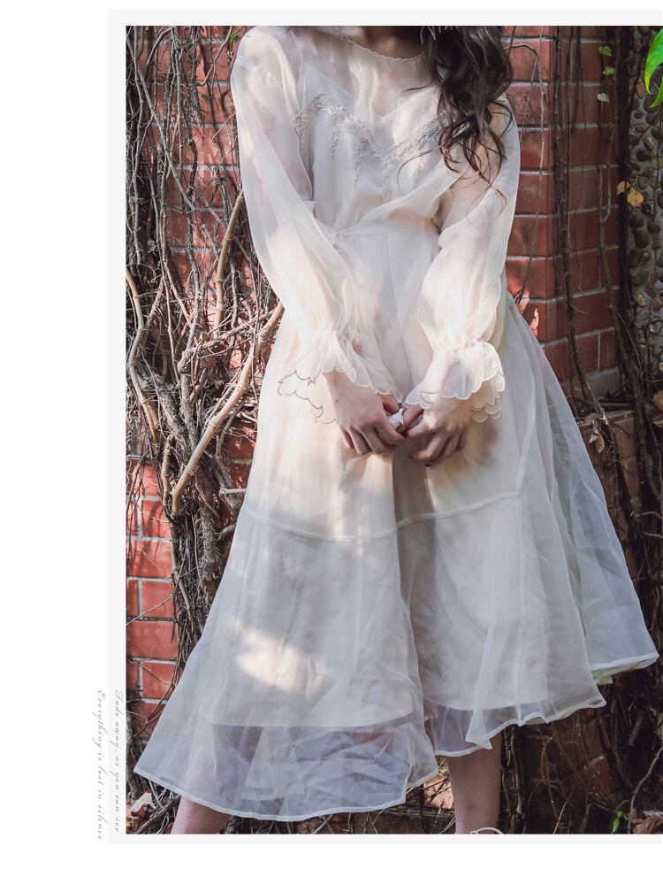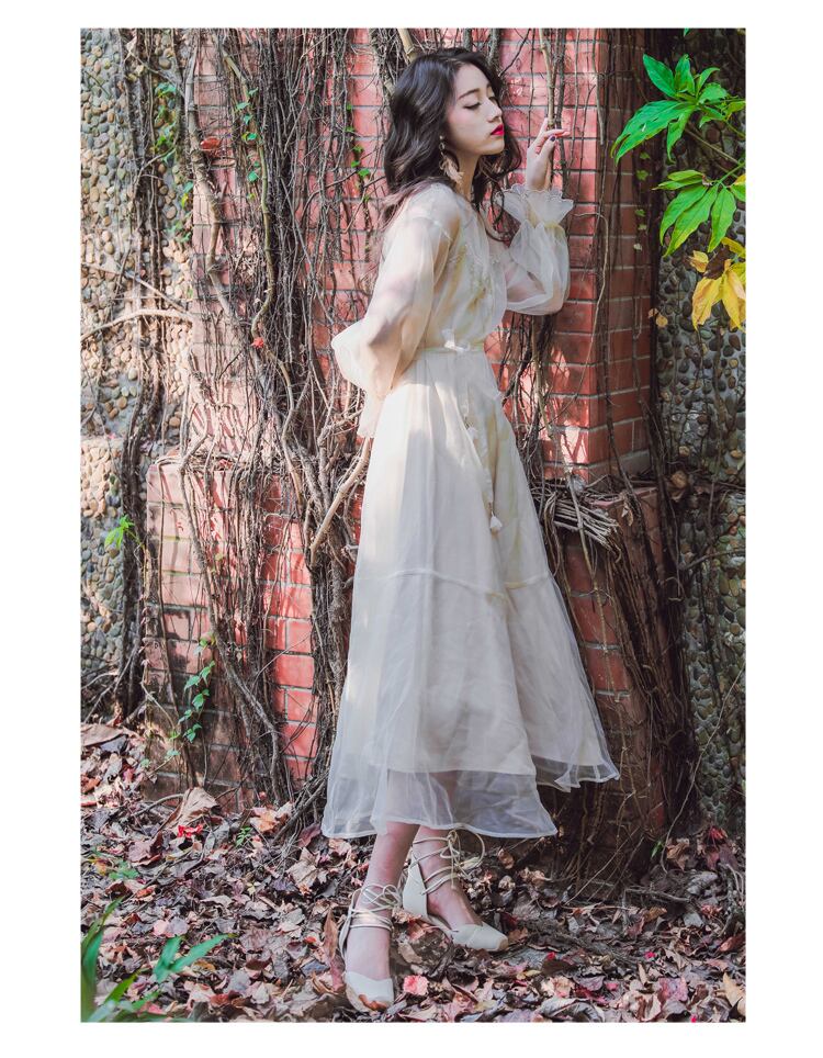 ワンピース フレアワンピース マキシ マキシ丈 袖あり 長袖 フレアスリーブ ラウンドネック フレア レース 刺繍 チュール シフォン フリル 透け感 シースルー ラブリー キュート ガーリー 無地 花柄 春 10代 20代 S M L
