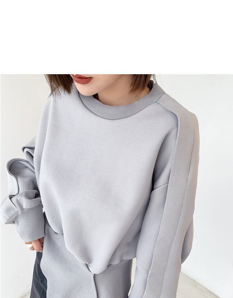 トップス プルオーバー トレーナー 袖あり 長袖 ラウンドネック 襟なし アシンメトリー 切り替えデザイン かわいい 大人可愛い きれいめ シンプル カジュアル 大人 上品 おしゃれ お洒落 大人可愛い 大人女子 こなれ感 ラフ 個性的 主役級 存在感 無地 秋 冬 10代 20代 30代 レディース 女性用 デート お出かけ 公園デビュー 女子会 お泊まり 休日 旅行 普段使い ファッション コーデ スタイル モテ サイズ S M 色展開 灰色 グレー