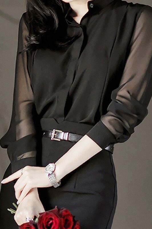 トップス ブラウス 透け感 シースルー ポリエステル 大人可愛い きれいめ シンプル 大人 上品 おしゃれ お洒落 大人可愛い 大人女子 セクシー エレガント 抜け感 無地 春 秋 10代 20代 オフィス ビジネス OL 通勤 韓国 韓国系 オルチャン ファッション コーデ スタイル S M L XL 2XL 黒 ブラック