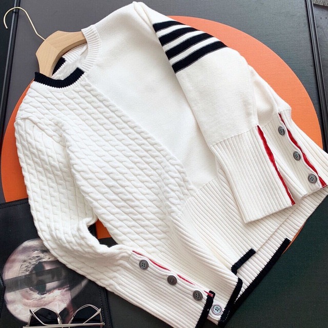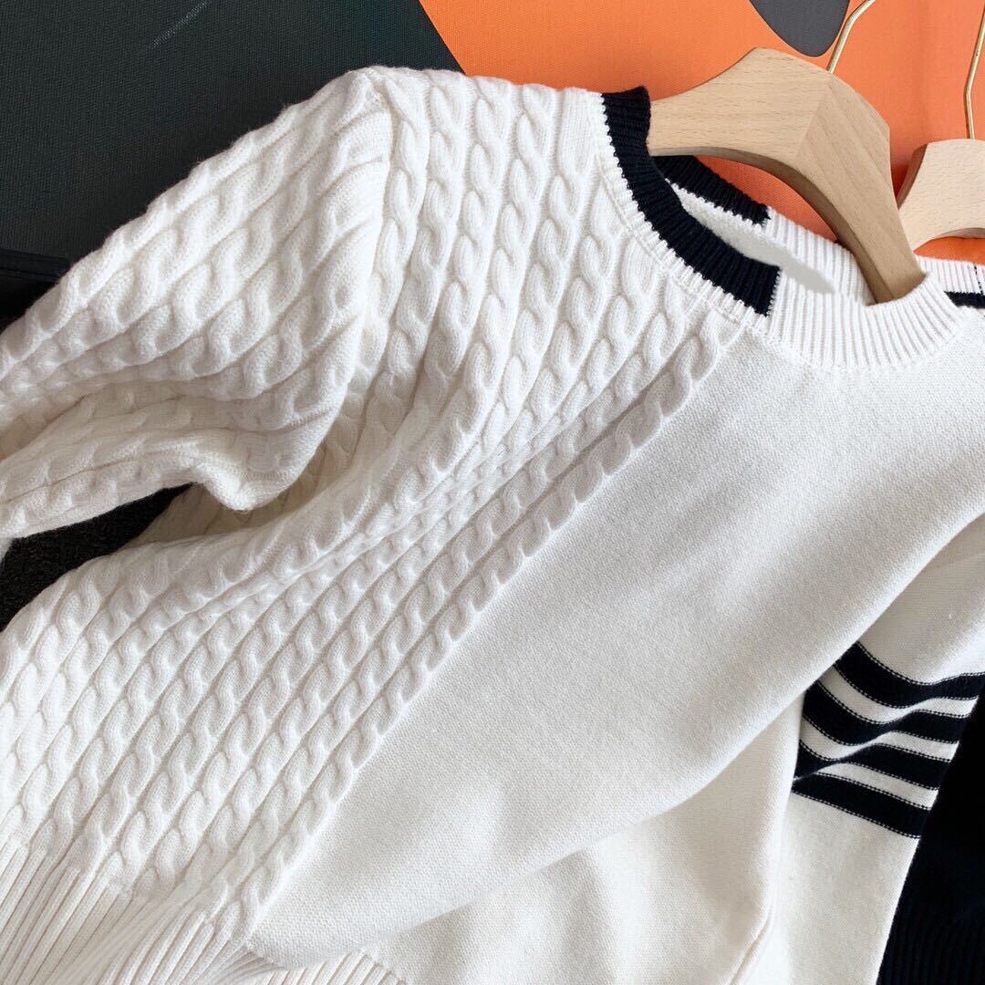 トップス ニット セーター ミドル丈 袖あり 長袖 ラウンドネック ストレート アシンメトリー サイドスリット ニット かわいい 大人可愛い カジュアル おしゃれ お洒落 かっこいい メンズライク ガーリー ストライプ ツイスト編み 春 秋 冬 10代 20代 30代 レディース 学生 通学 デート お出かけ ファッション サイズ S M L ホワイト
