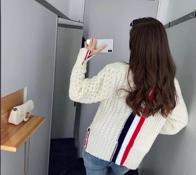 背中のトリコロールカラーがアクセント。見た目が暖かそうなアシンメトリーのツイスト編みデザイン。カレッジコーデやカジュアルコーデに使えるアイテムです。
